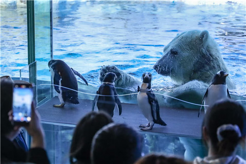 邂逅爱笑的白鲸、会跳舞的海豚,观赏北极熊兄弟的功夫对决、南极企鹅的学霸内卷大战,还有全球罕见的海豚母子哺乳名场面惊喜呈现。同时能观看海狮妙妙与小丑的技艺争锋、海象summer独家黑哨,探秘长相潦草的海底毒师、肌肤黝黑的大嘴怪,沉浸式欣赏3万多只海洋生物构筑的奇趣盛景。